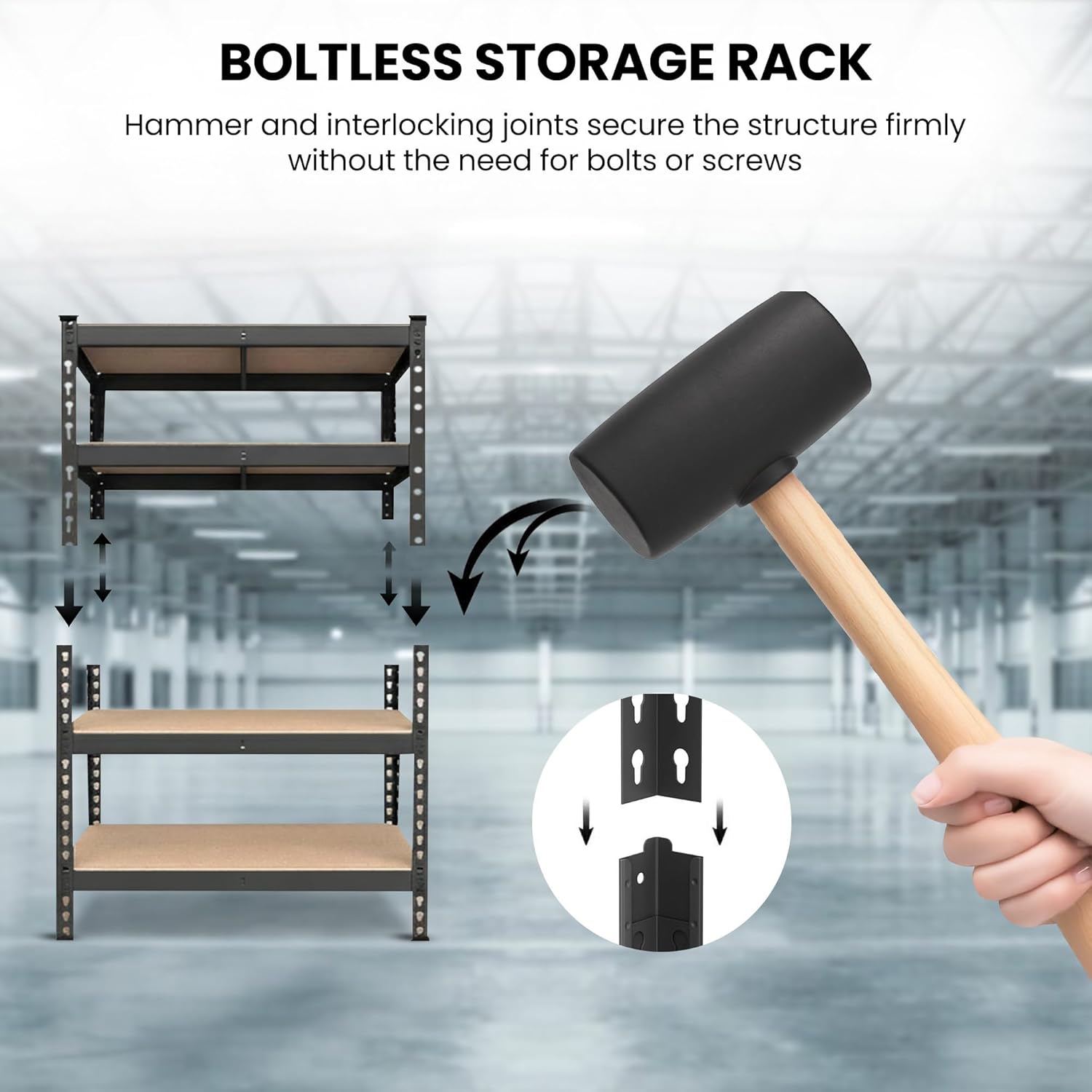 This boltless iron rack for storage requires no tools, screws, or bolts—quick, effortless assembly in minutes. Each shelf is height-adjustable, allowing you to customize space for small containers, large appliances, tools, or warehouse supplies.