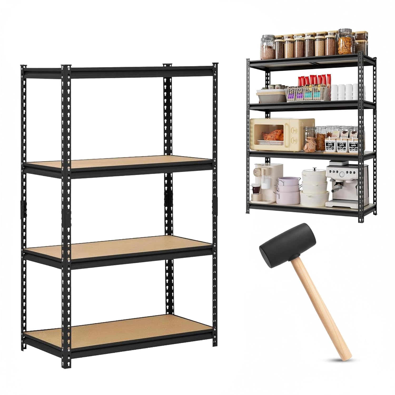 Comes with 4 sturdy tiers, each shelf sized 24” × 12”. Standing 54 inches tall, it provides abundant space for groceries, office files, tools, appliances, garage essentials, and more—keeping everything neat and accessible.