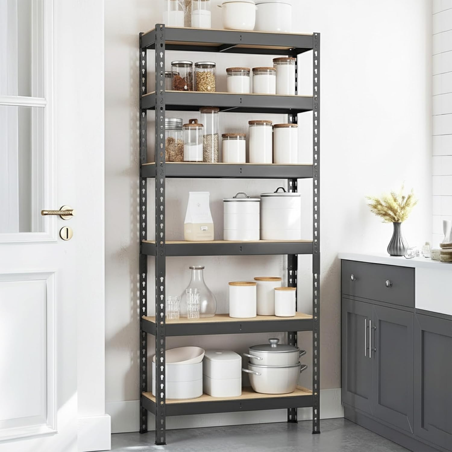 Robustt 6-Tier Multipurpose Storage Rack | Bolt-Free Assembly | Metal Stand with Thick MDF Board | 175kg Capacity Per Shelf | 72x24x12 Inch Adjustable Shelf Rack for Home, Garage & Shop
