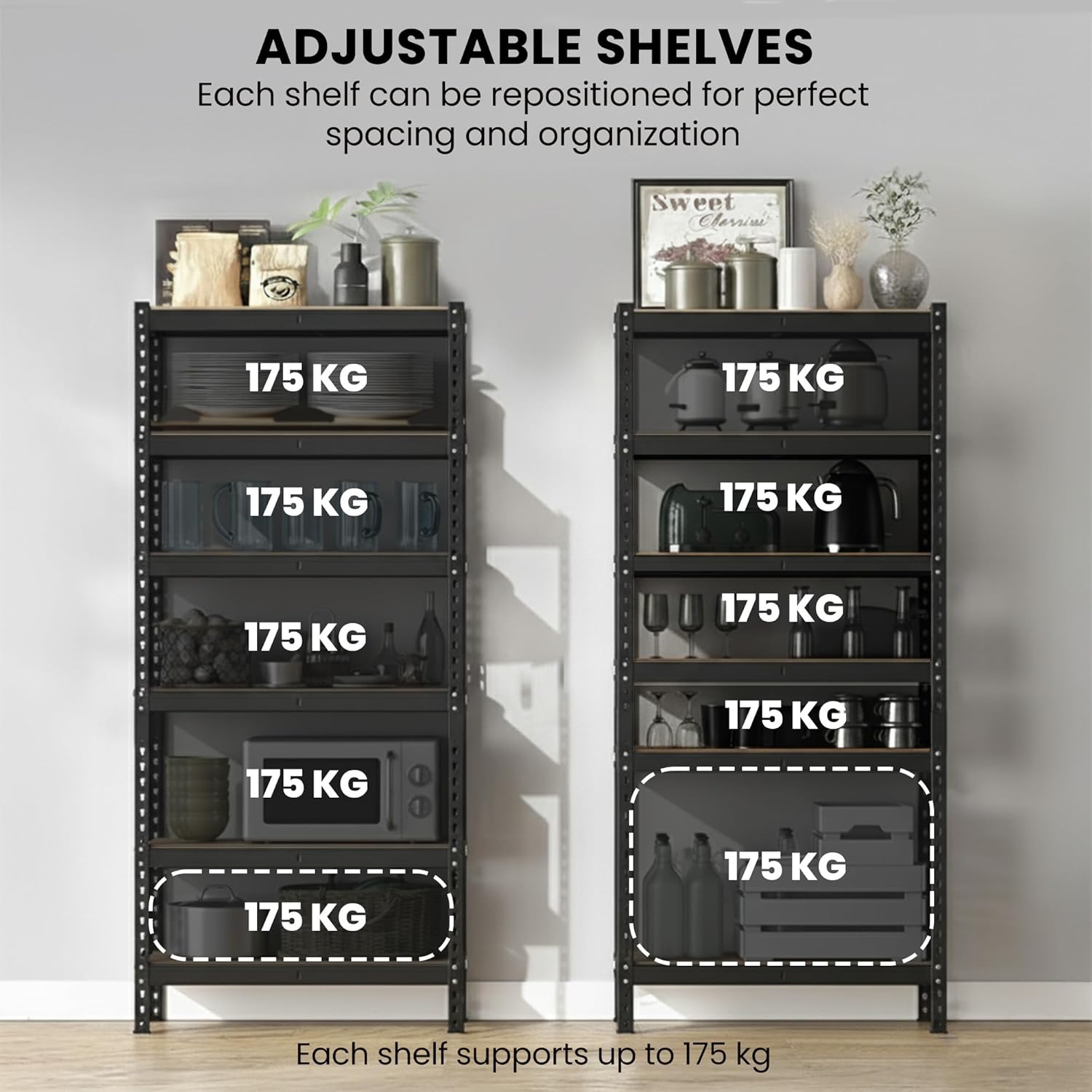 - Heavy-Duty Load Capacity: Each level of this adjustable shelf rack is engineered to support up to 175 kg, offering exceptional strength. Perfect for both domestic and heavy duty industrial racks requirements, it safely holds groceries, tools, appliances, or office files without bending.