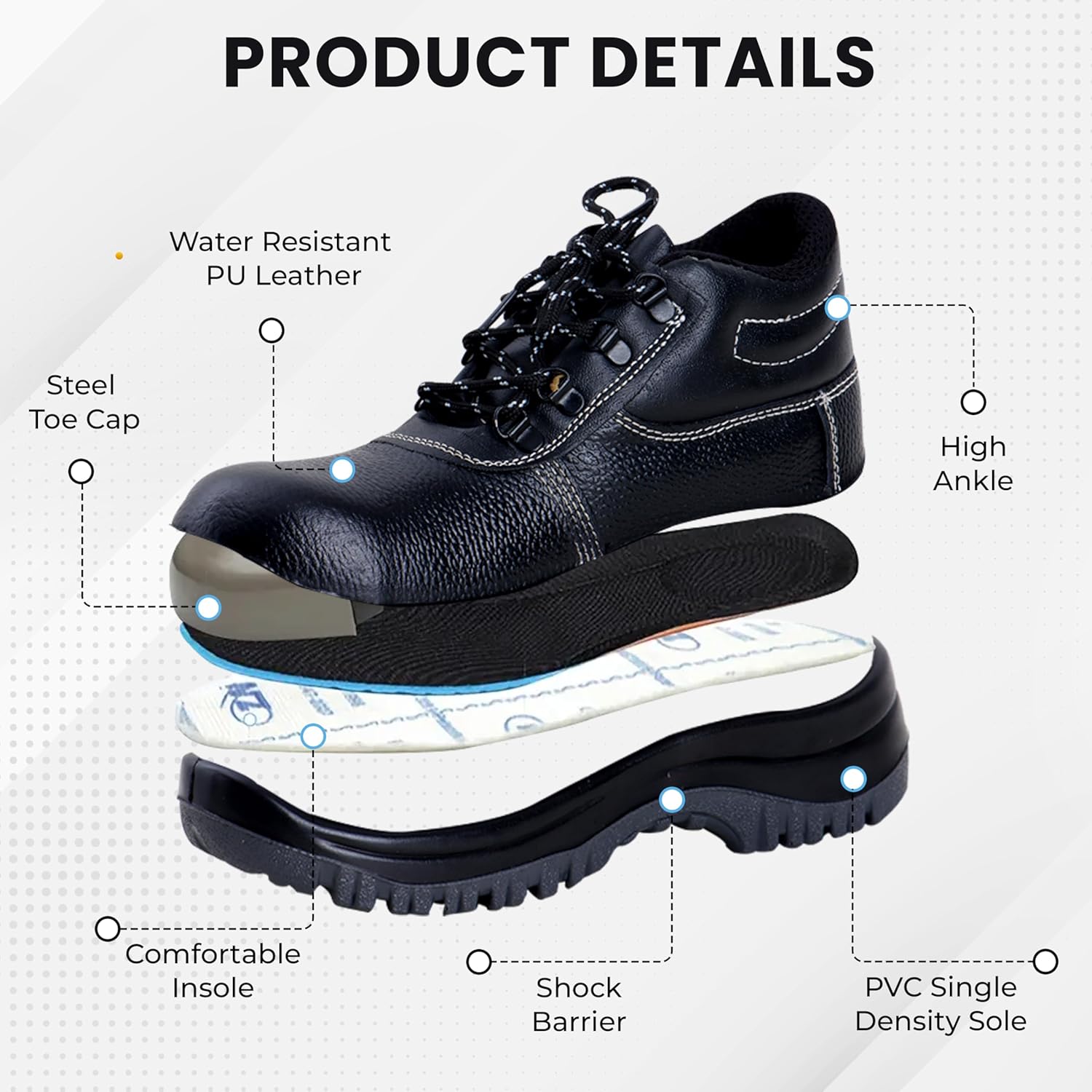 Robustt Double Density High Ankle Safety Shoes with Steel Toe