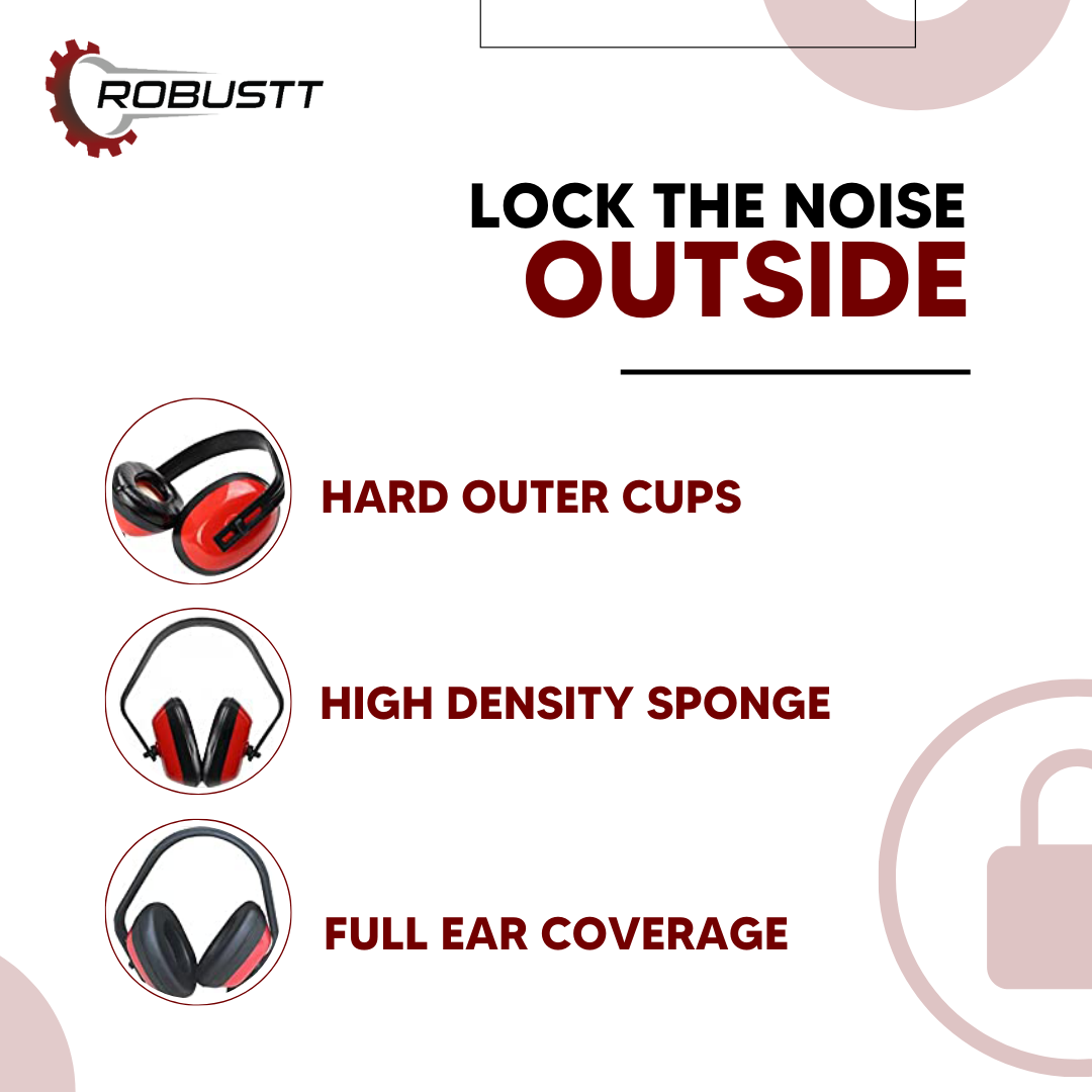 - Robustt earmuffs for noise reduction helps protect your ears from excessively loud noises and aid in the prevention of hearing loss.