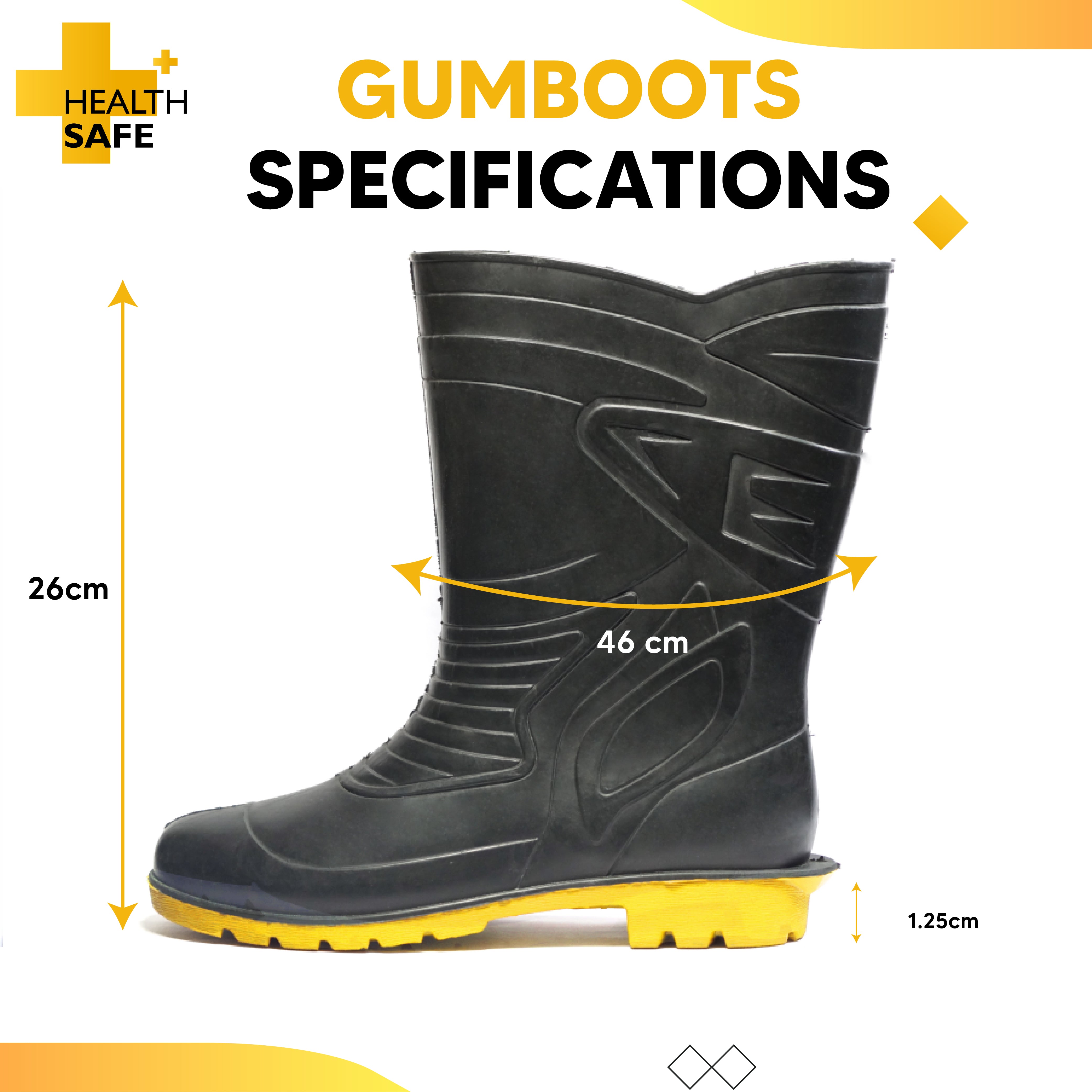 Health Safe Gum Boot For Men, (28.5cm Height) (Black/Yellow) Flexible PVC, Oil/Water/Acid Resistance, Industrial/Labor/Worker Purpose, Unisex Gumboot