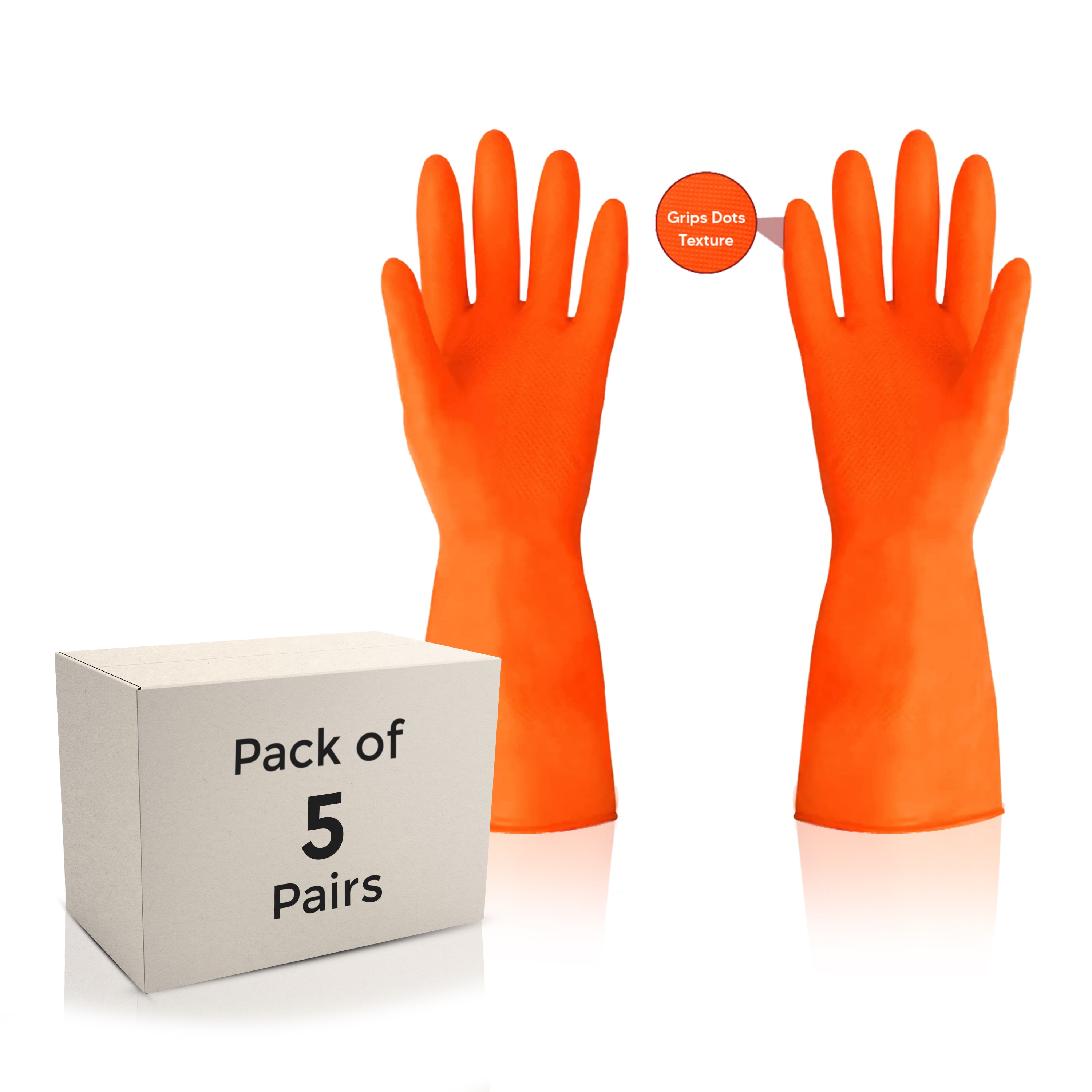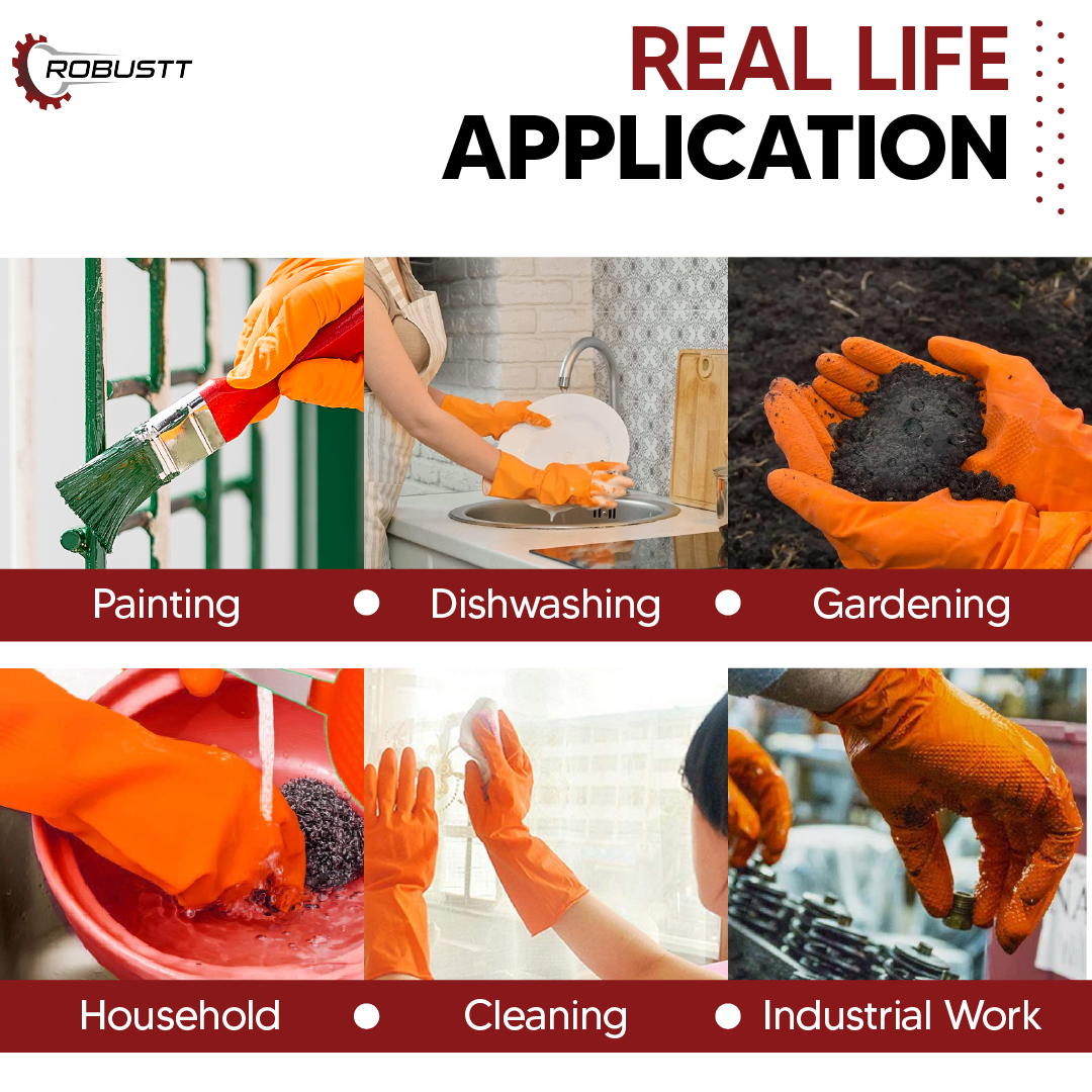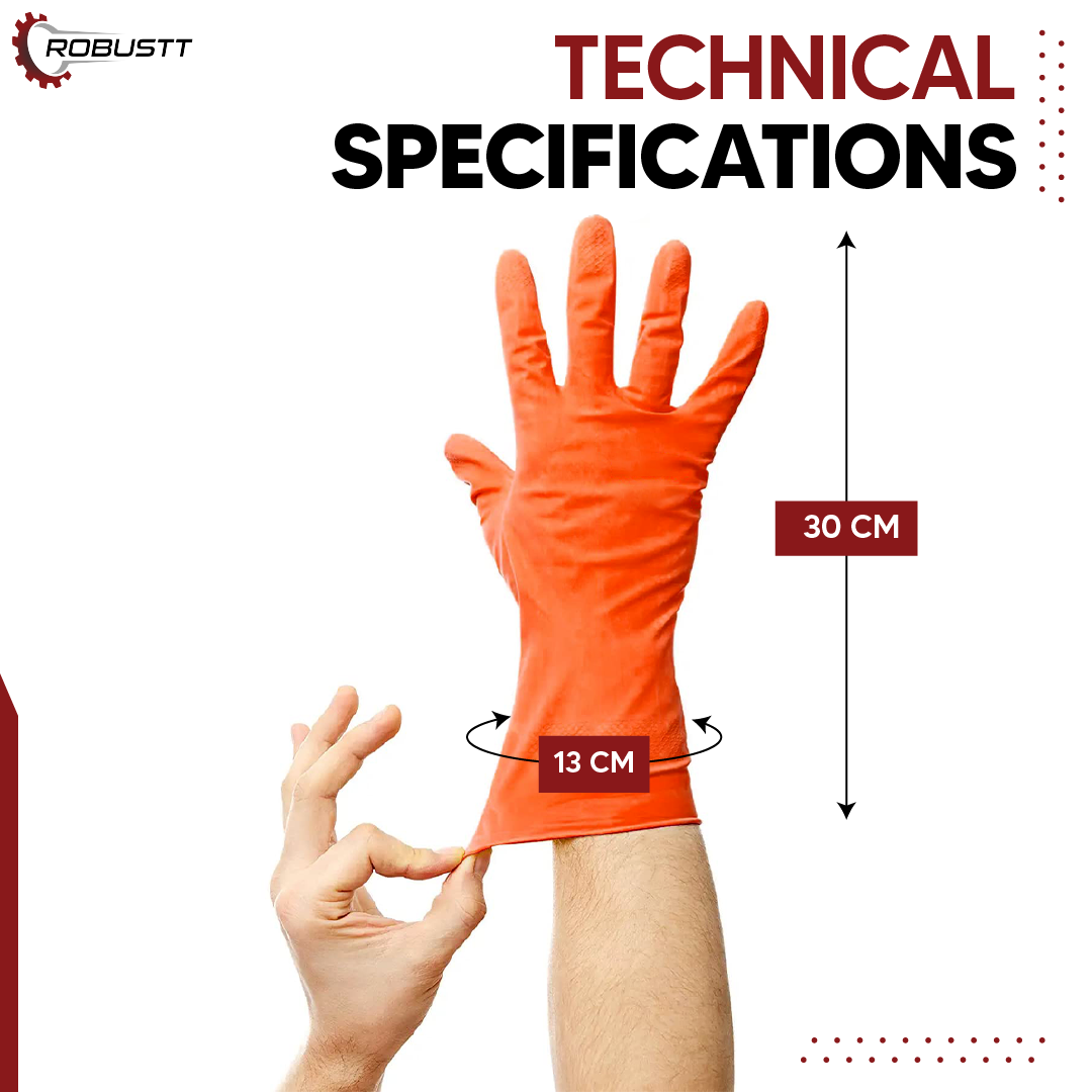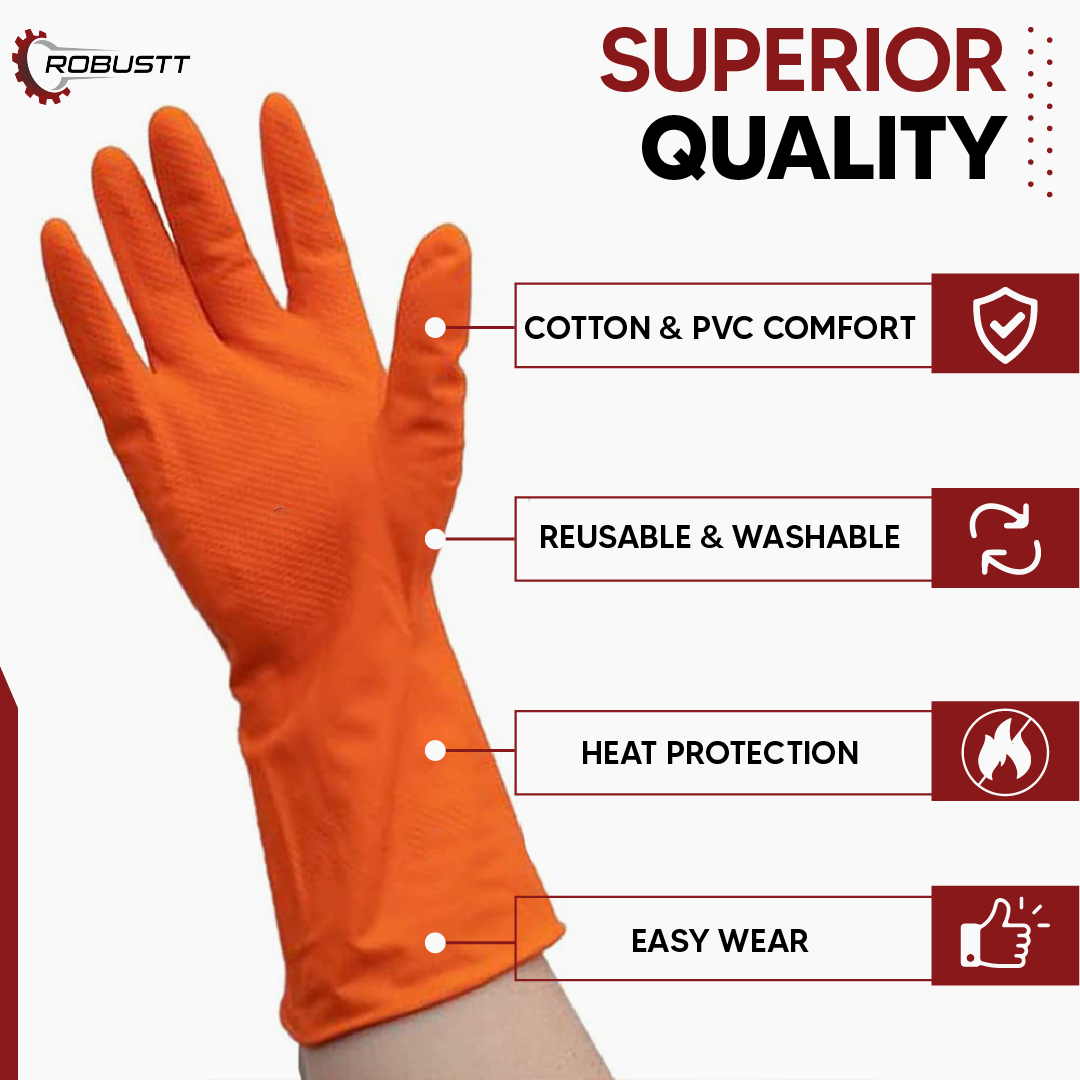 Robustt Premium Orange Rubber Cleaning Gloves, Reusable Gloves for Cleaning, Chemicals & Detergents Resistant, Heavy Duty Hand Gloves, Hand Gloves for Dish Washing, Gardening & Cleaning