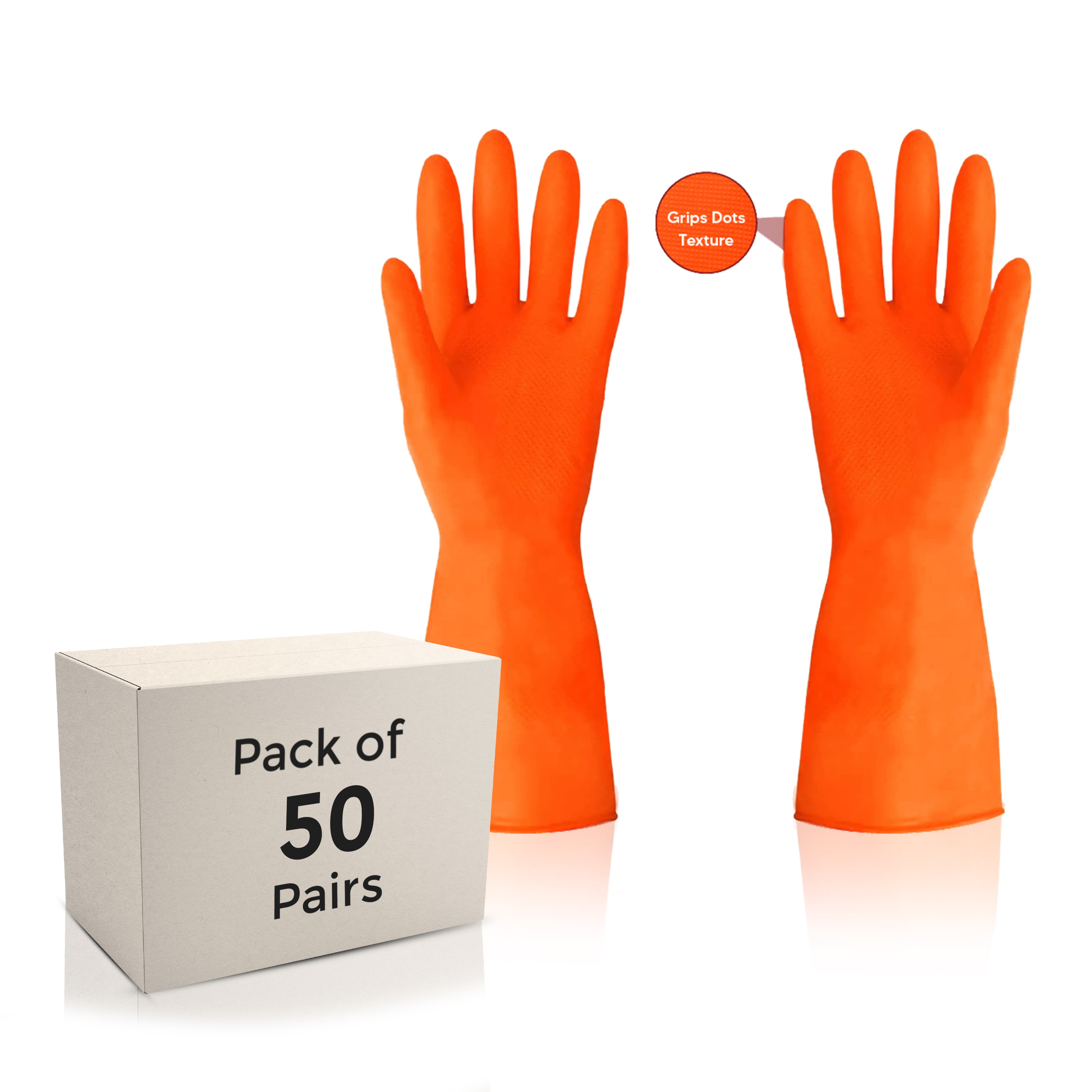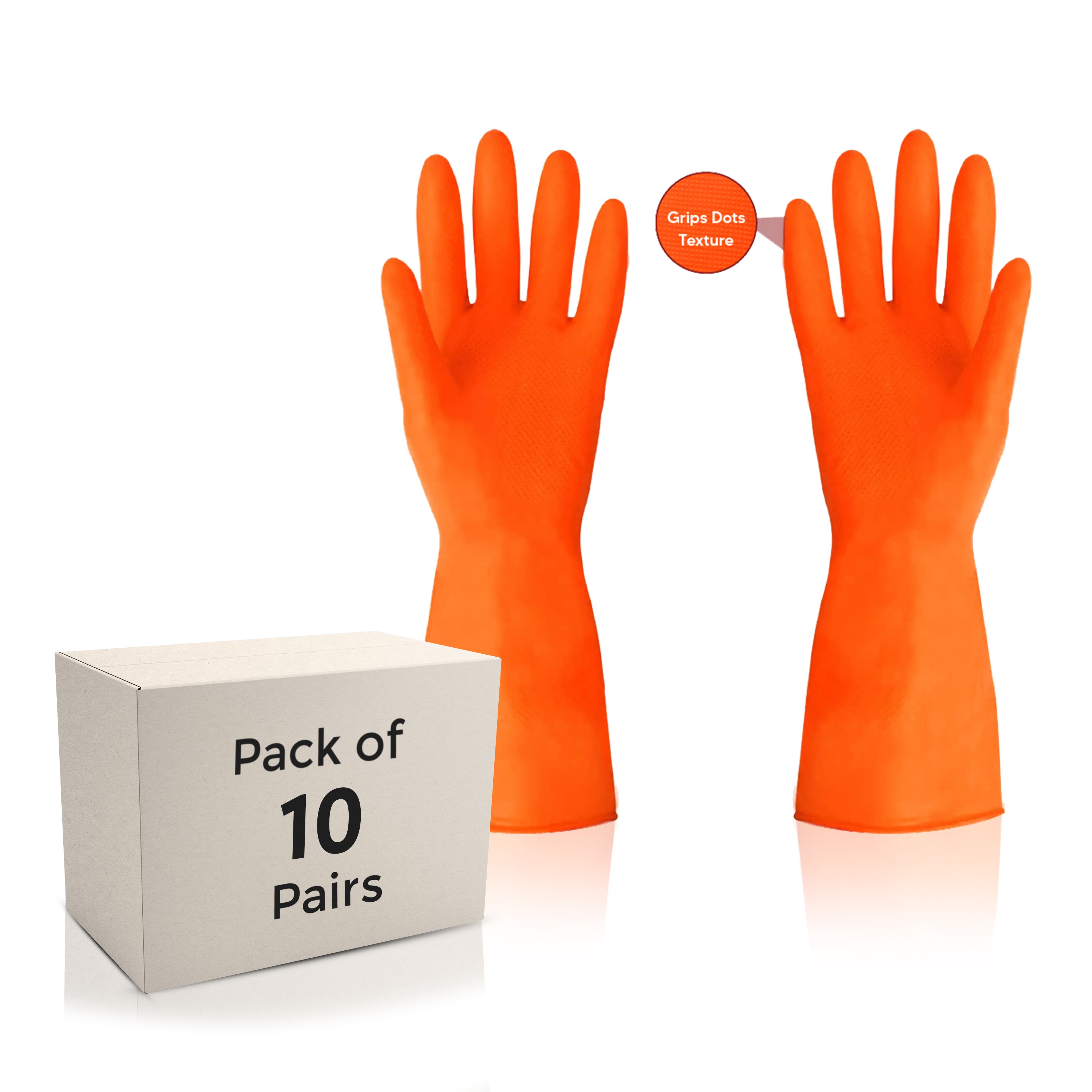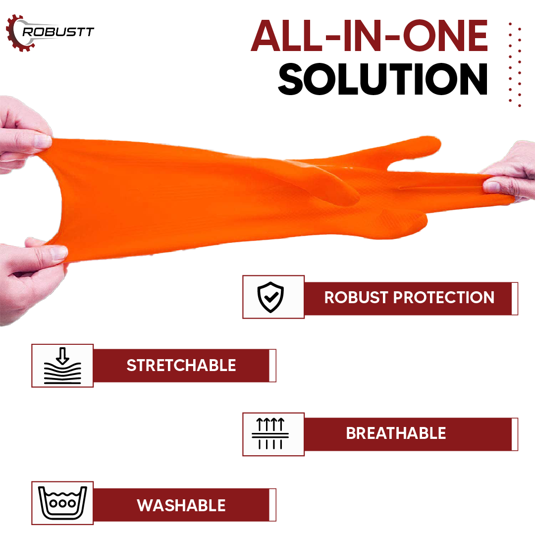 Robustt Premium Orange Rubber Cleaning Gloves, Reusable Gloves for Cleaning, Chemicals & Detergents Resistant, Heavy Duty Hand Gloves, Hand Gloves for Dish Washing, Gardening & Cleaning