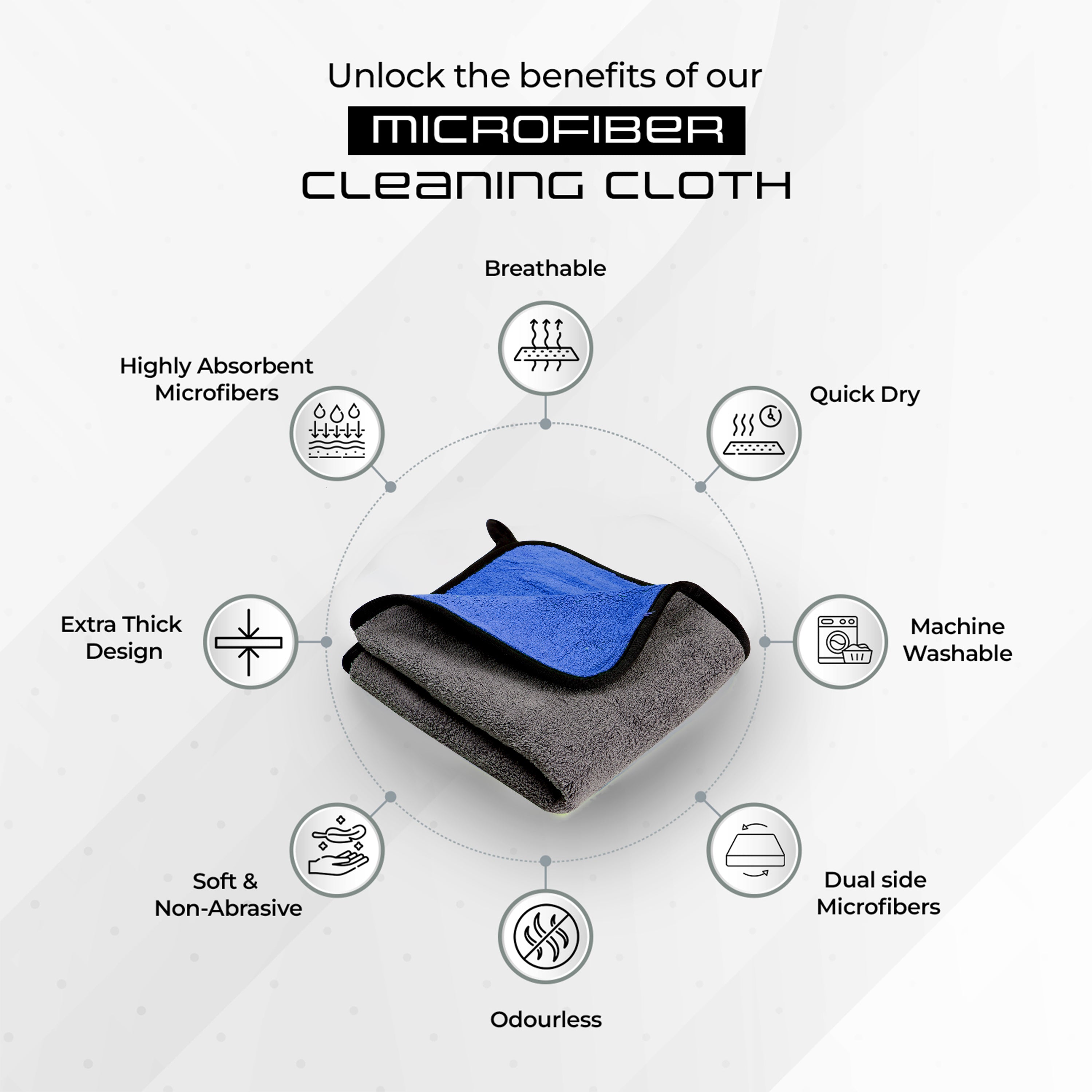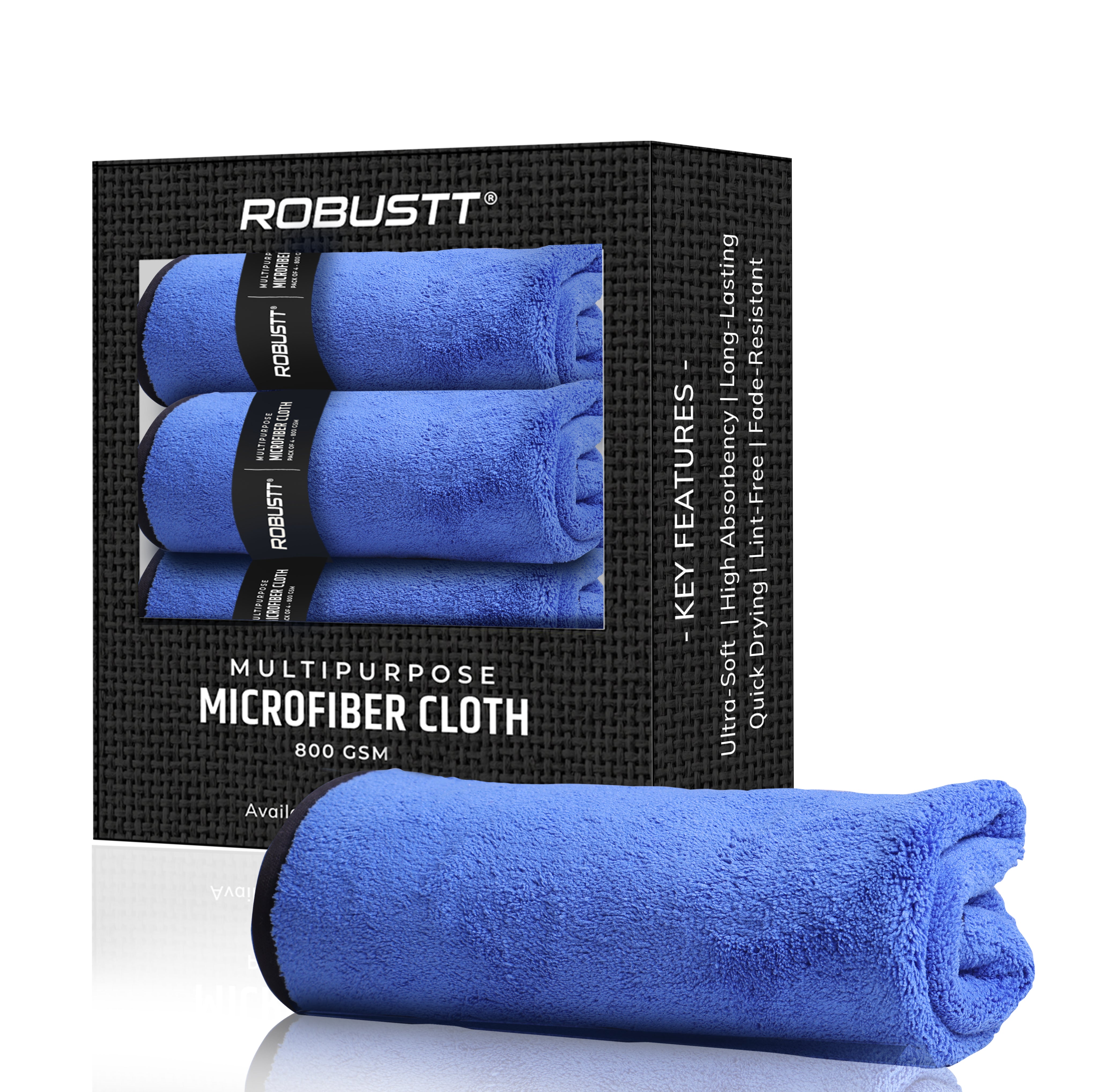 Robustt Multipurpose Microfiber Cleaning Towel Cloth (800 GSM, Blue)