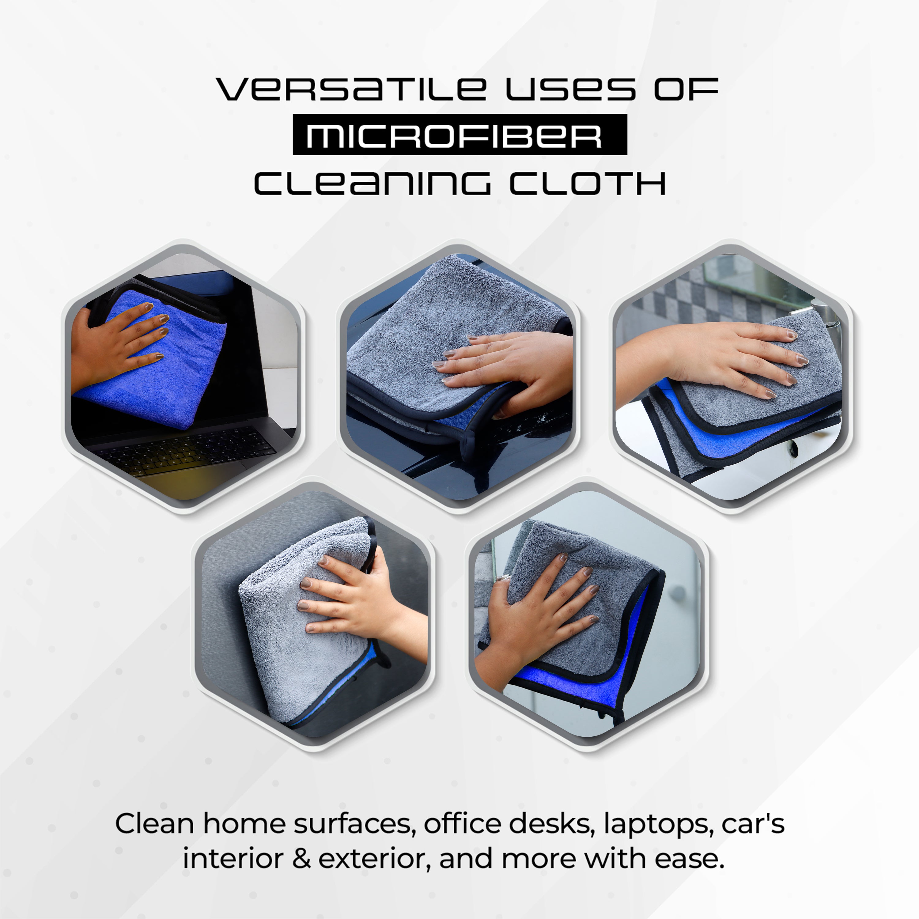 Highly Absorbent Dust Towels for All Vehicles Bikes Cars Glass Kitchens (40cm x 40cm, Blue)