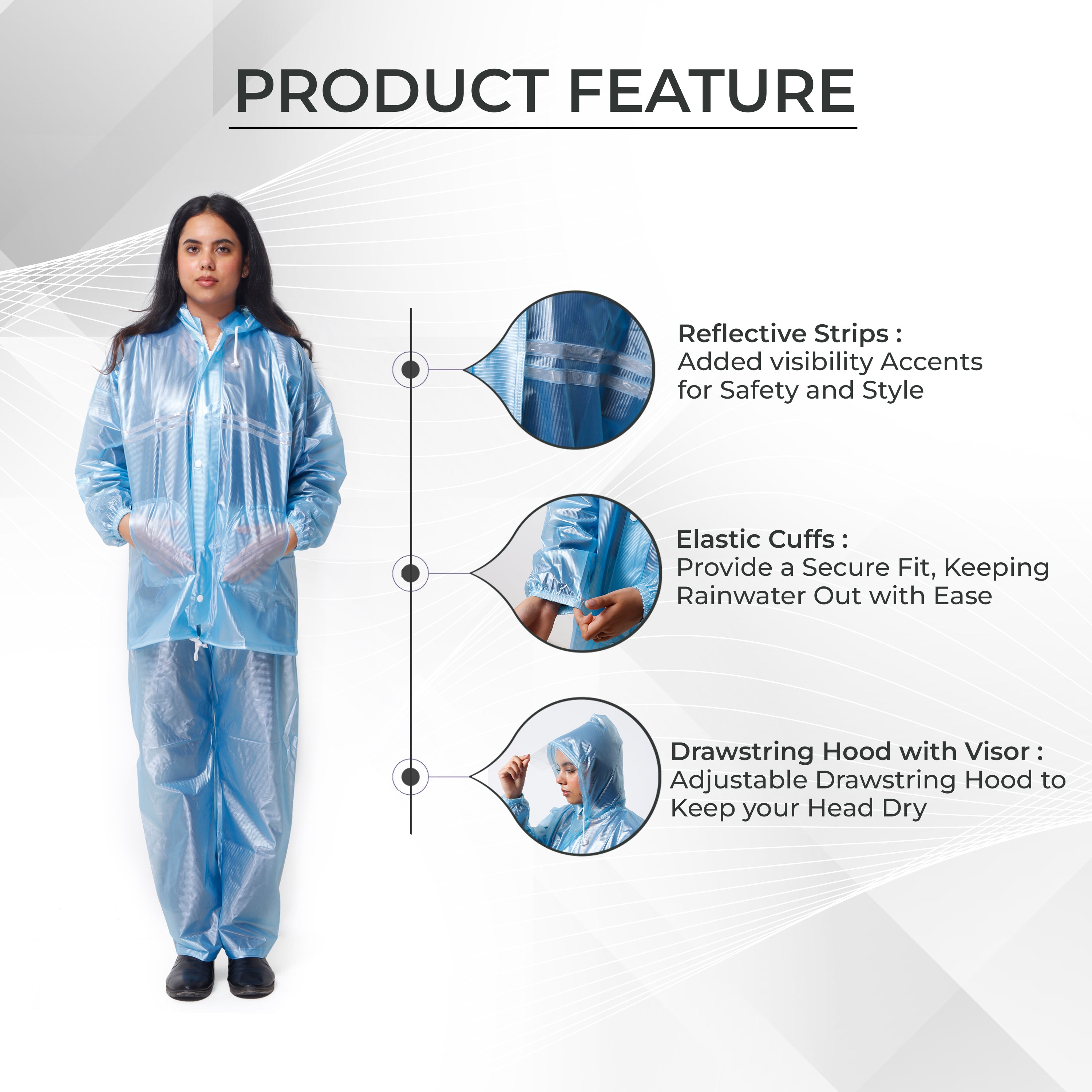 Reflective Strips | Elastic Waist & Cuffs | Adjustable Hood | Suitable for safe bike ride | Lightweight PVC Raincoat for Men and Women