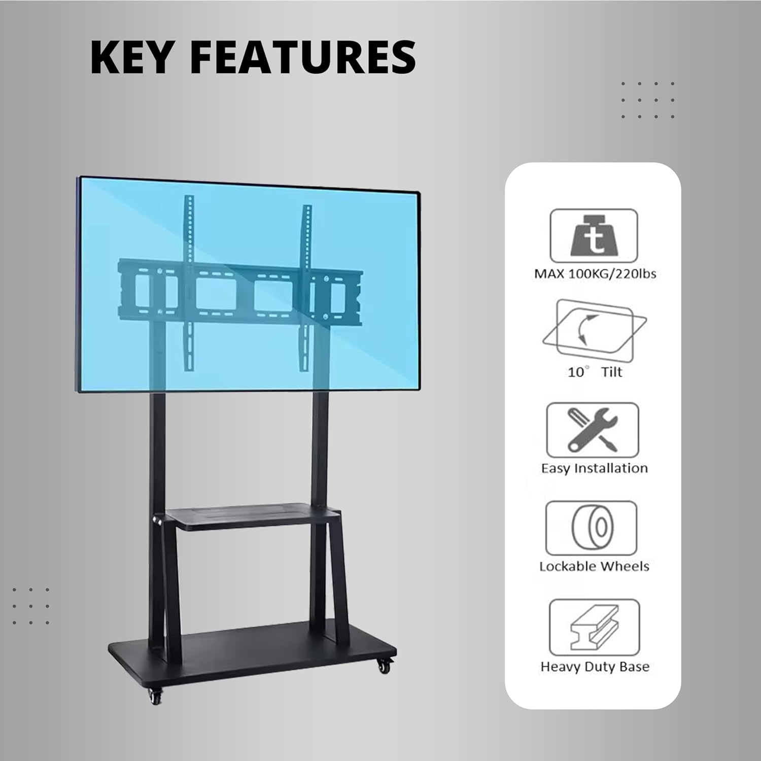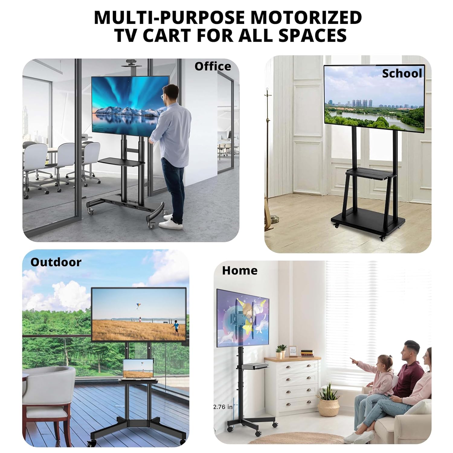 Robustt TV Stand with Wheels | Fits 50-98 Inches TV | Heavy Duty Material | Tilt & Height Adjustable Rolling TV Stand | Movable TV Stand | Flexible Shelf | Cable Management - Pack of 1