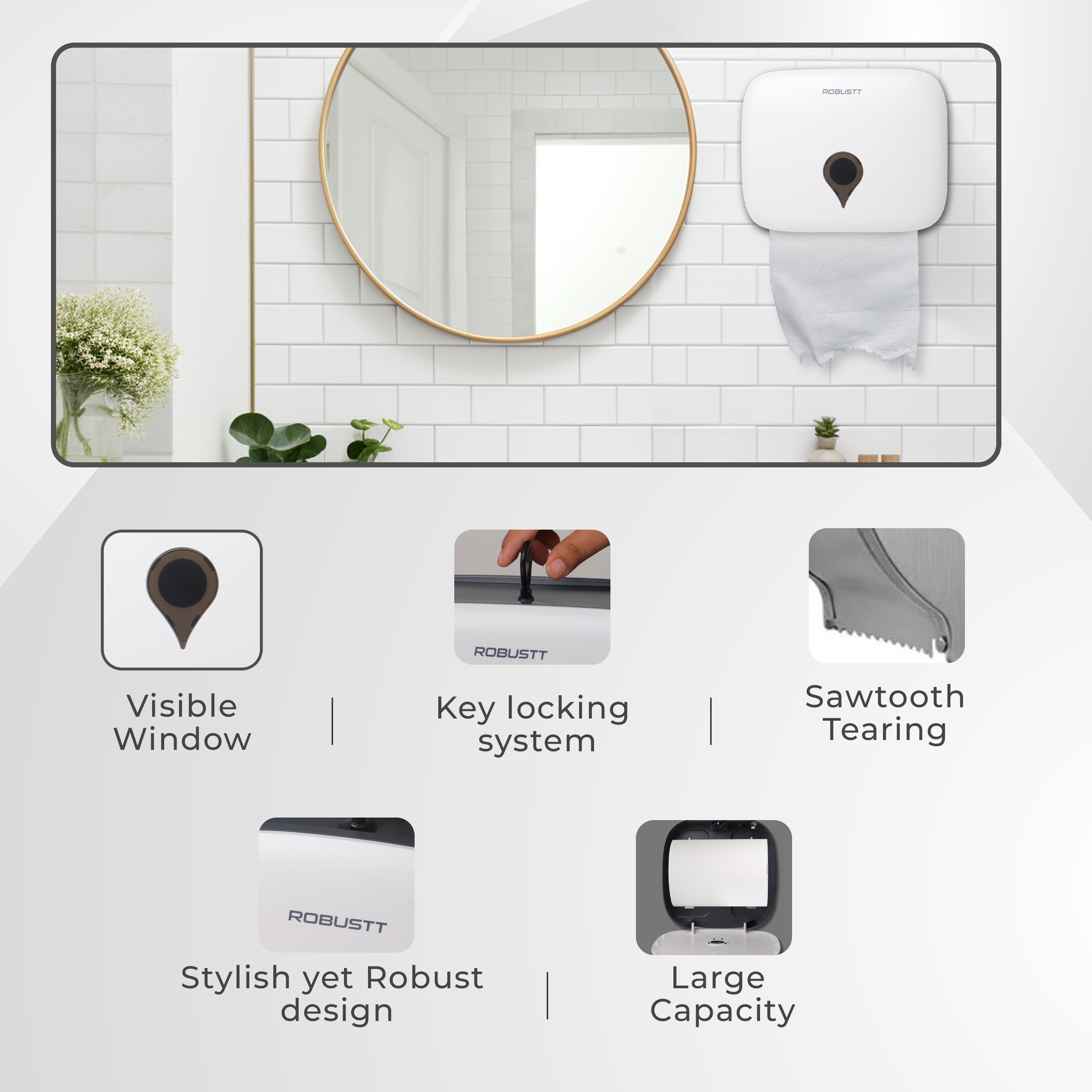 Robustt Wall-Mounted Jumbo Role Hand Towel Dispenser - White