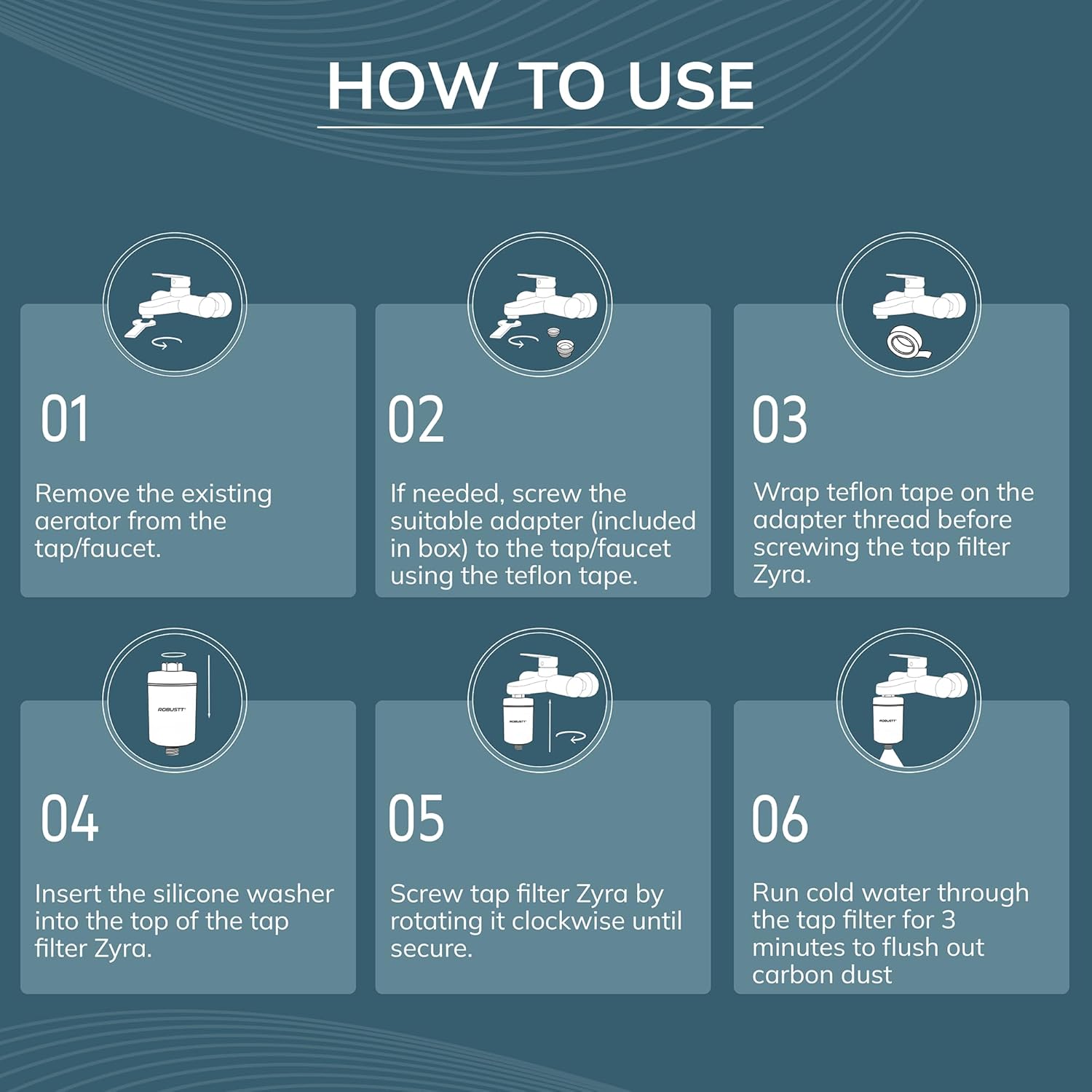 - Hard Water Softener – The Zyra water filter for tap is a reliable solution for managing hard water in your home. It softens water by reducing excess calcium and magnesium while filtering out sediments, chlorine, and other impurities through an advanced multi-layer filtration process. This improves water’s taste, color, and odor.