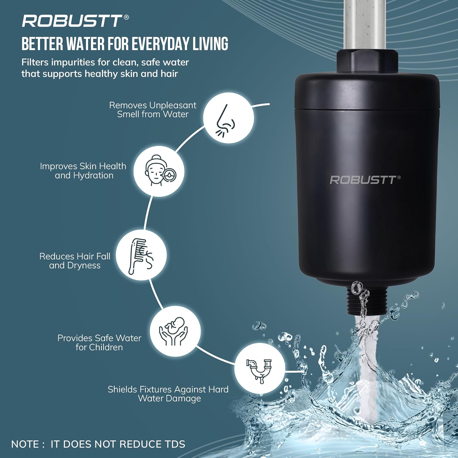 - Nourished Hair & Skin – Hard water can leave your skin dry and sensitive, and hair prone to breakage and fall. This water softener filters the water, removing harsh minerals that damage hair and skin, leaving your skin hydrated and your hair smooth, strong, and shiny.